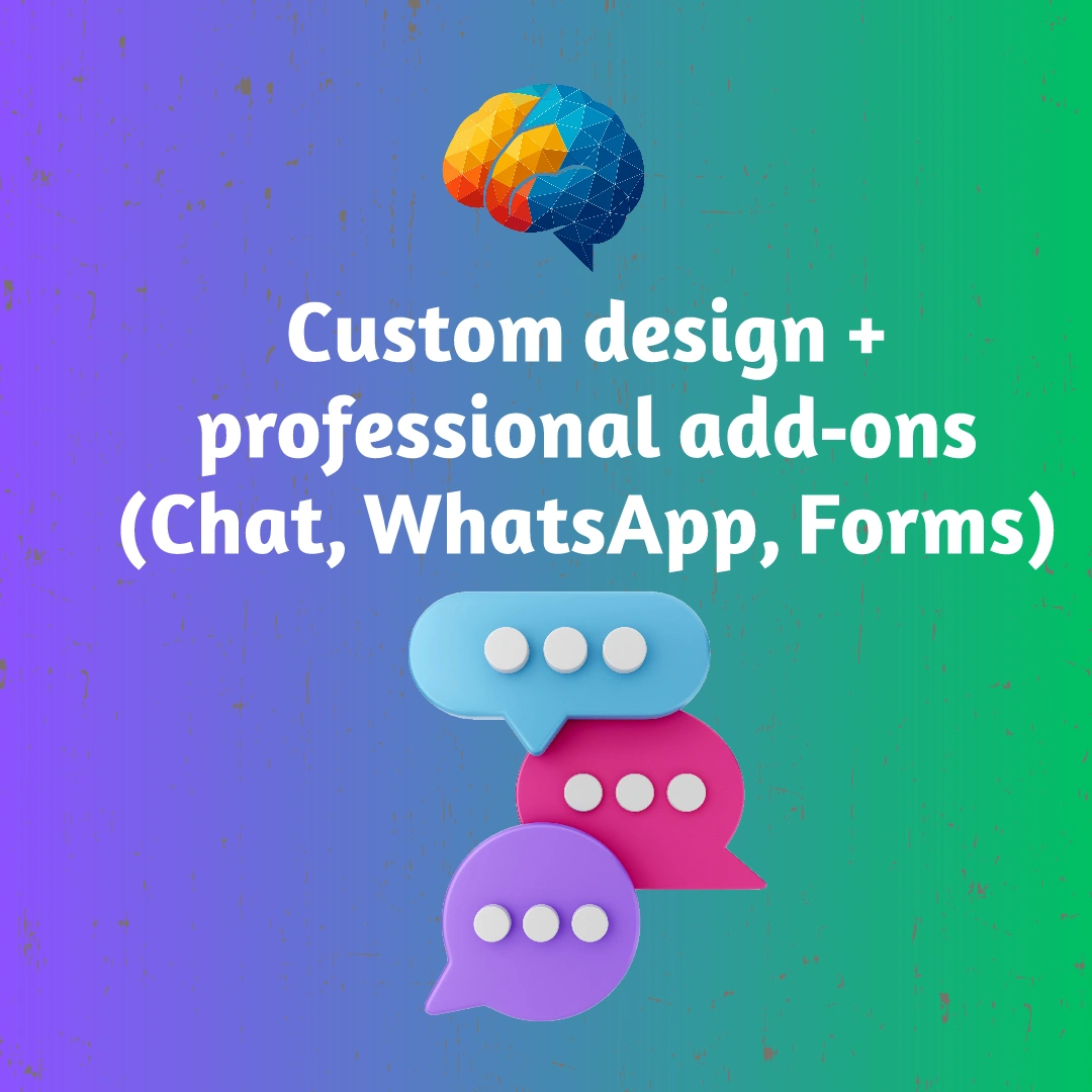تصميم مخصص + إضافات احترافية (Chat, WhatsApp, Forms).
